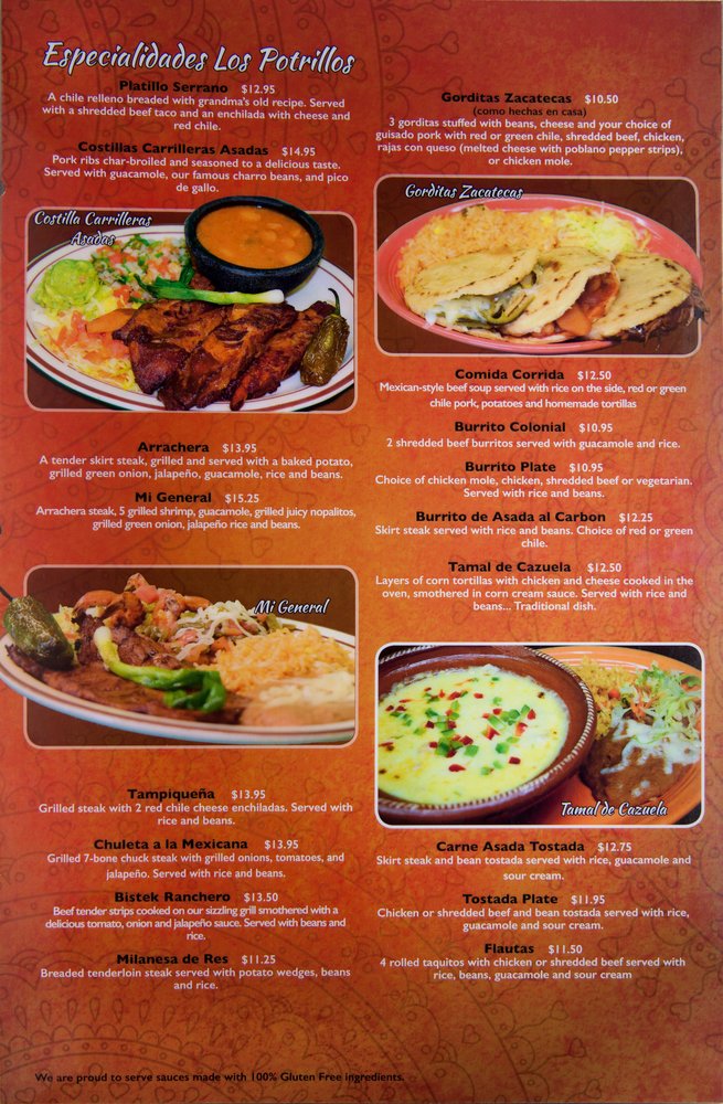 Los Potrillos is a hidden gem located in Santa Fe, offering authentic Mexican cuisine in a cozy and welcoming atmosphere. With a diverse menu featuring dishes like enchiladas suizas, Gorditas Zacatecas, and chiles en nogado, there's something for everyone to enjoy. Customers rave about the generous portions, flavorful salsas, and delicious margaritas. The restaurant's rustic decor and friendly staff create a welcoming and relaxed dining experience, perfect for families or groups. Whether you're looking for a quick takeout option or a leisurely meal on the outdoor patio, Los Potrillos delivers on both taste and service. Don't miss out on this local favorite and give their menu a try!
